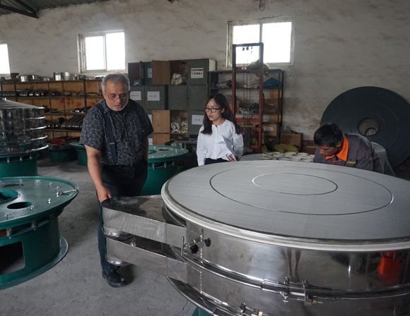 2017年6月6號,德國客戶Mr Tissa來新鄉市大漢振動機械有限公司參觀考察并驗收所訂購的DHC-1500-3S型超聲波旋振篩2臺,DHC-1800-3S型超聲波旋振篩。