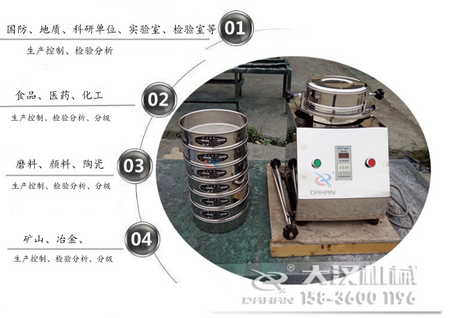 DH-300T試驗篩的振動源是一臺立式振動電機+時間繼電器+試驗篩框,是旋振篩的三次元振動工作原理,一般用在篩分物料的分級,在食品、醫(yī)藥等行業(yè)都比較多見。