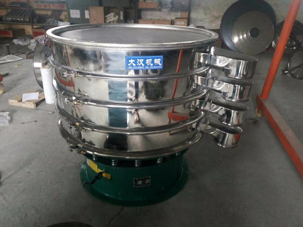速凍玉米分級(jí)除雜專用振動(dòng)篩是大漢振動(dòng)篩的一種,是由一臺(tái)直立式振動(dòng)篩作為激振源,電機(jī)上下兩端安裝有偏心重錘,將電機(jī)的旋轉(zhuǎn)運(yùn)動(dòng)轉(zhuǎn)變?yōu)樗健⒋怪薄A斜的三次元運(yùn)動(dòng)、再把這個(gè)運(yùn)動(dòng)傳遞給篩面。調(diào)節(jié)上下兩端的相位角,可以改變物料在篩面上的運(yùn)動(dòng)軌跡。