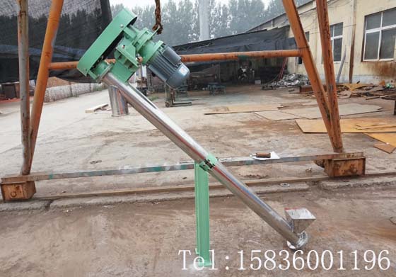 LS型螺旋輸送機是利用旋轉的螺旋將被輸送的物料沿固定的機殼內推移而進行輸送工作,頭部及尾部軸承移至殼體外,吊軸承采用滑動軸承設有防塵密封裝置,軸瓦一般采用粉末冶金,輸送水泥采用毛氈軸瓦,吊軸和螺旋軸采用滑塊連接。